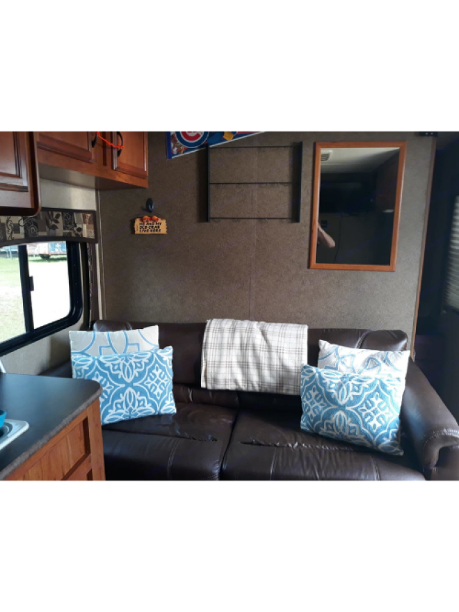 Lots of room inside with 5 slides, residential refrigerator with ice maker, separate ac in the master bedroom, master bedroom has a tv, Large bunk house, bath and a 1/2, outside kitchen with a refrigerator, Fresh and clean and ready to go on your next adventure. (2-bed rooms ) The living room has a sofa bed coffee marker fully stocked with pots and pans, linens. 4 beds in the bunkhouse can accommodate adults. Great for corporate outing very big and comfortable.